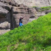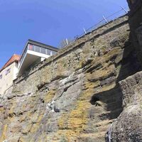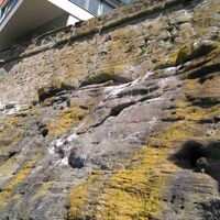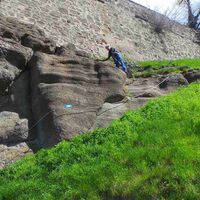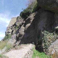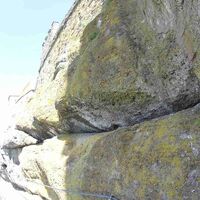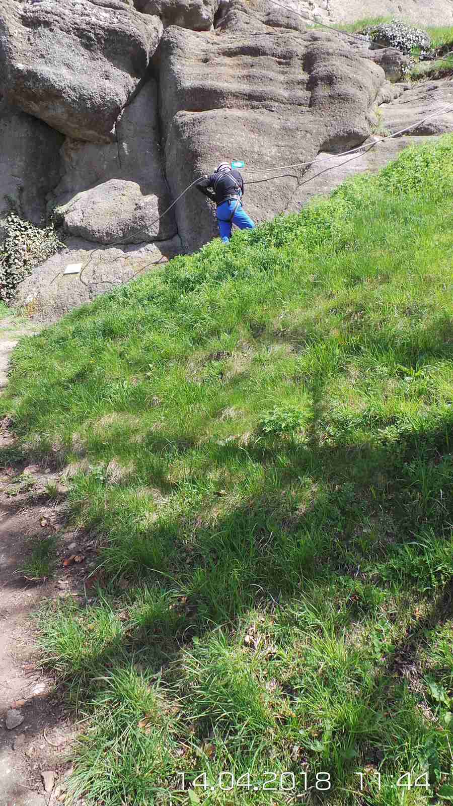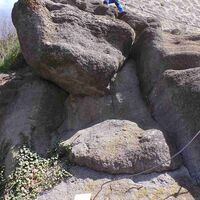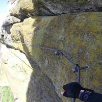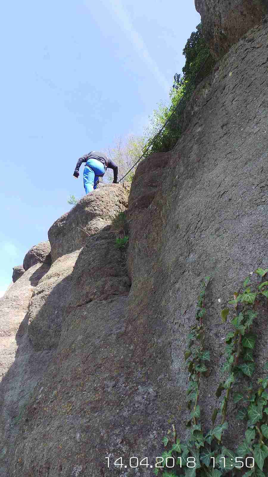 Dieser führt vom Gastgarten weiter über die Verlängerung (D/E) mit einer senkrechten Plattenwand im glatten Vulkangestein, 190 m über die Wand mit einer Schwierigkeit von C/D. Kletterzeit etwa 1 h.