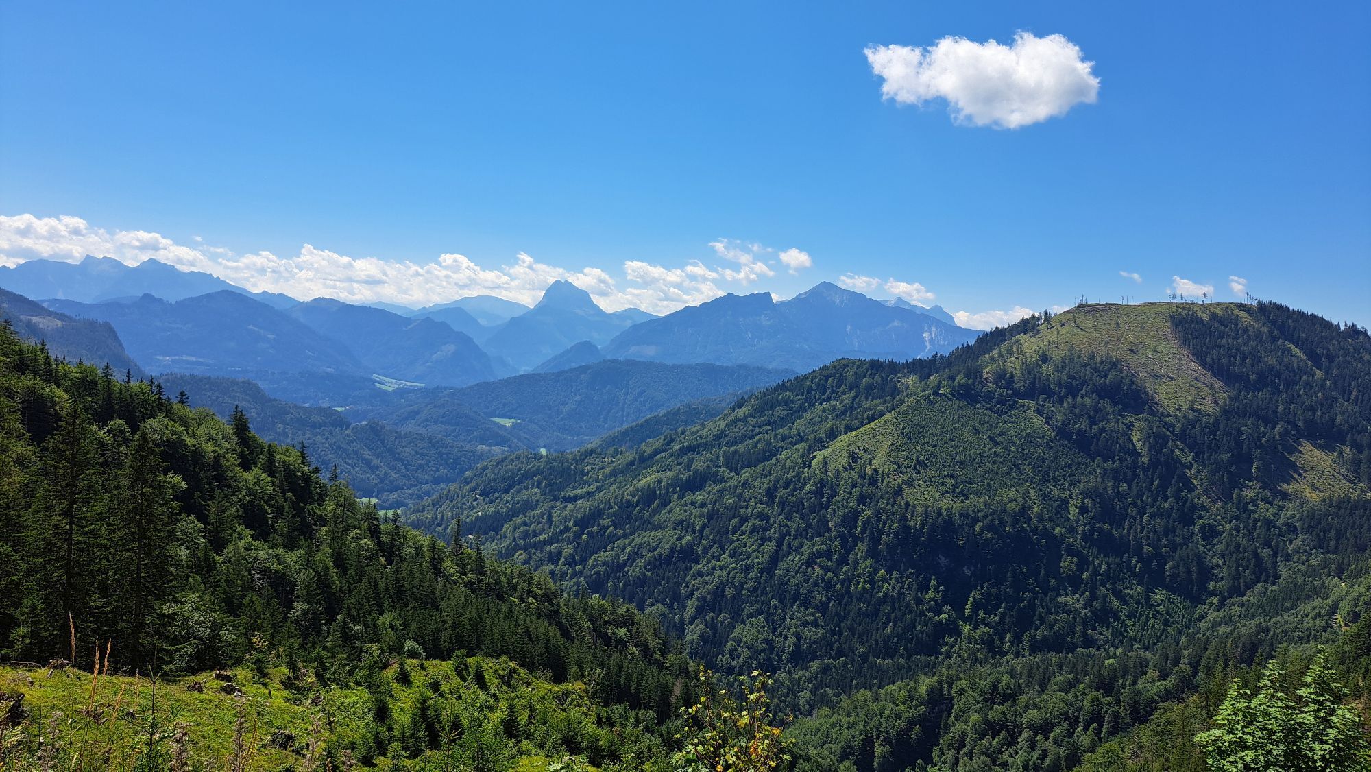 Nun folgst du der linken Forststraße weiter den Hängen des Gamssteins entlang leicht bergauf an der Naturfreundehütte vorbei und irgendwann wieder leicht fallend bis oberhalb der Moaralm und zu einer weiteren Forststraßengabelung. Die rechte der Forststraßen bringt dich ein Stück bergab, bis du schräg rechts in einen kleineren Forstweg abbiegst, der dich in vielen Serpentinen hinab nach Palfau bringt.