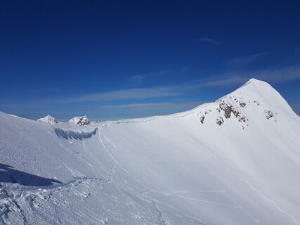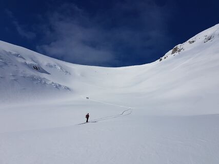 Abfahrt entweder wie Aufstieg oder direkt vom Gipfel Richtung Süden (anspruchsvoll)