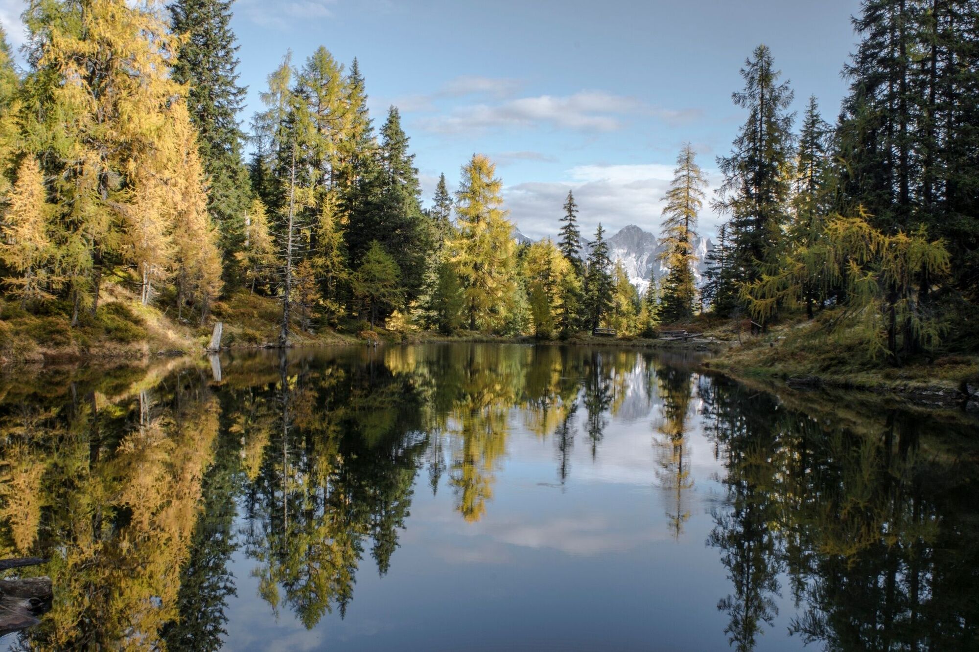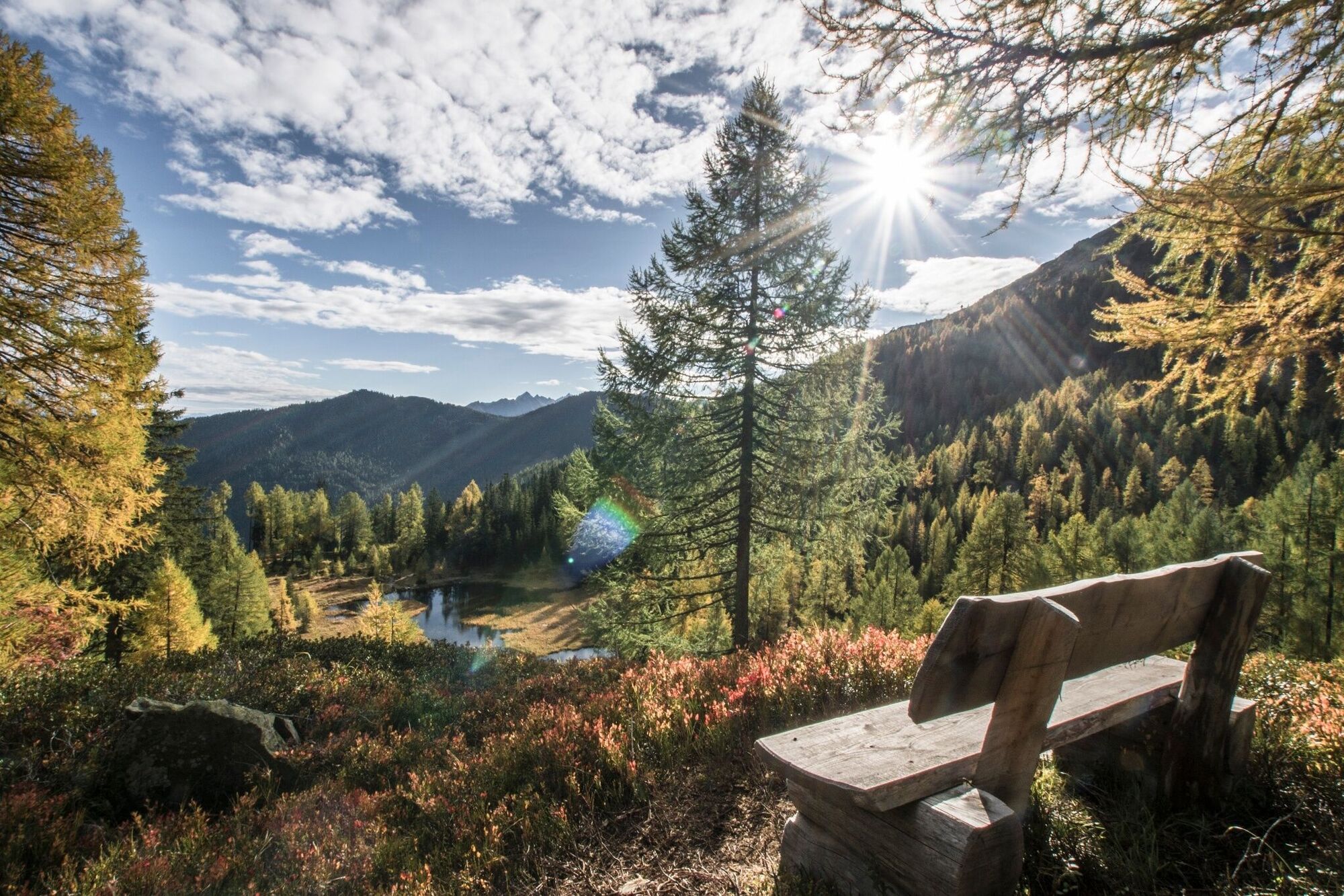 Über einige Serpentinen folgst Du dem Weg nun bergab bis du nach kurzer Wanderung einen kleinen See erreichst - von den Einheimischen liebevoll "Glackerch" genannt. Weiter geht es durch den lichten Wald zu einem weiteren kleinen See - dem Waldsee. Hier lädt ein idyllisch gelegenes Bankerl zum Verweilen ein.