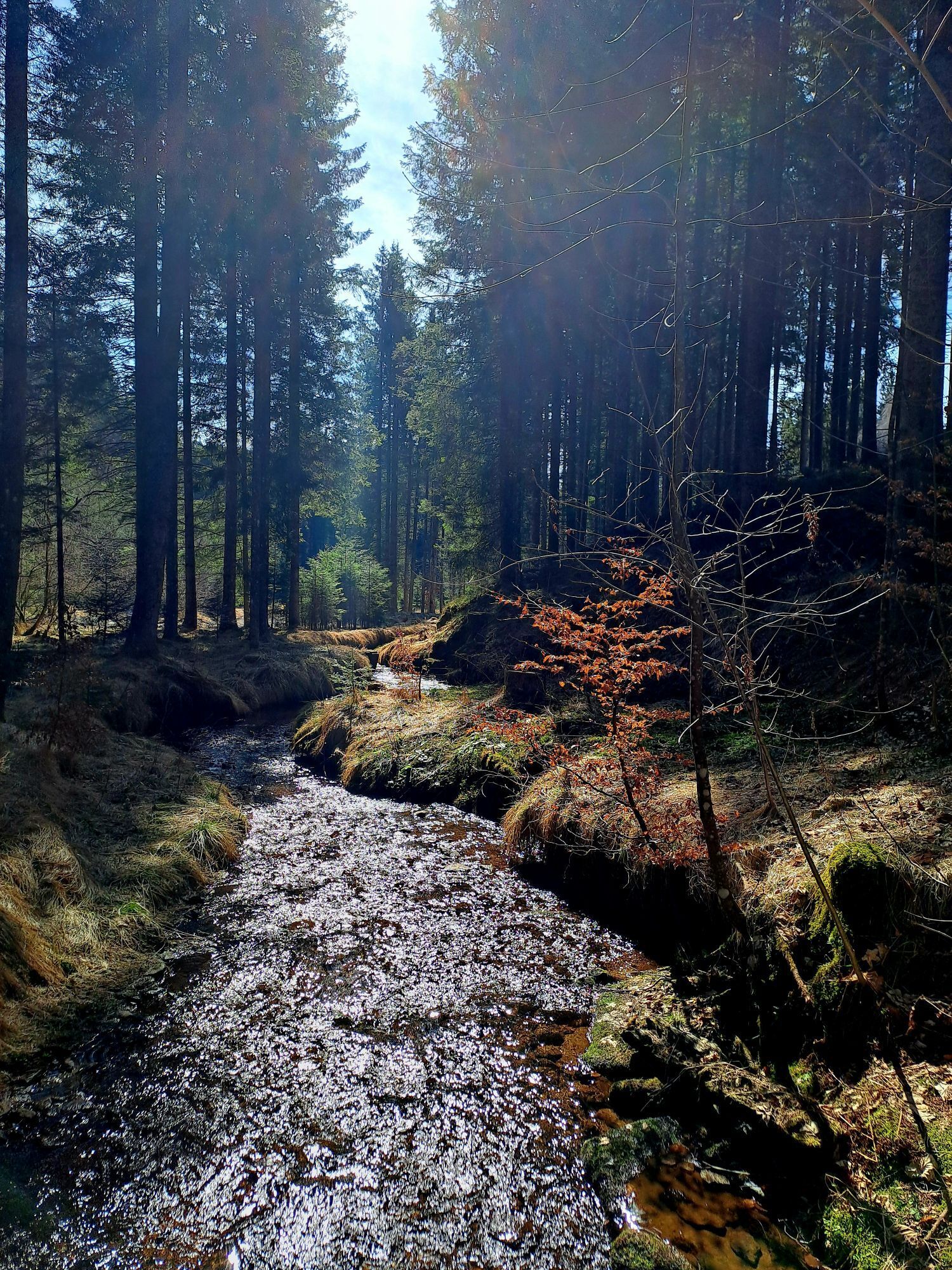Zuerst geht man durch den Wald und einen kurzen Wiesenabschnitt immer bergab. Vorsicht, ich habe etwa bei km 2 die Abzweigung verpasst (dort war ein Hochsitz). Sieht man schön in meinem GPS Track in der Karte.