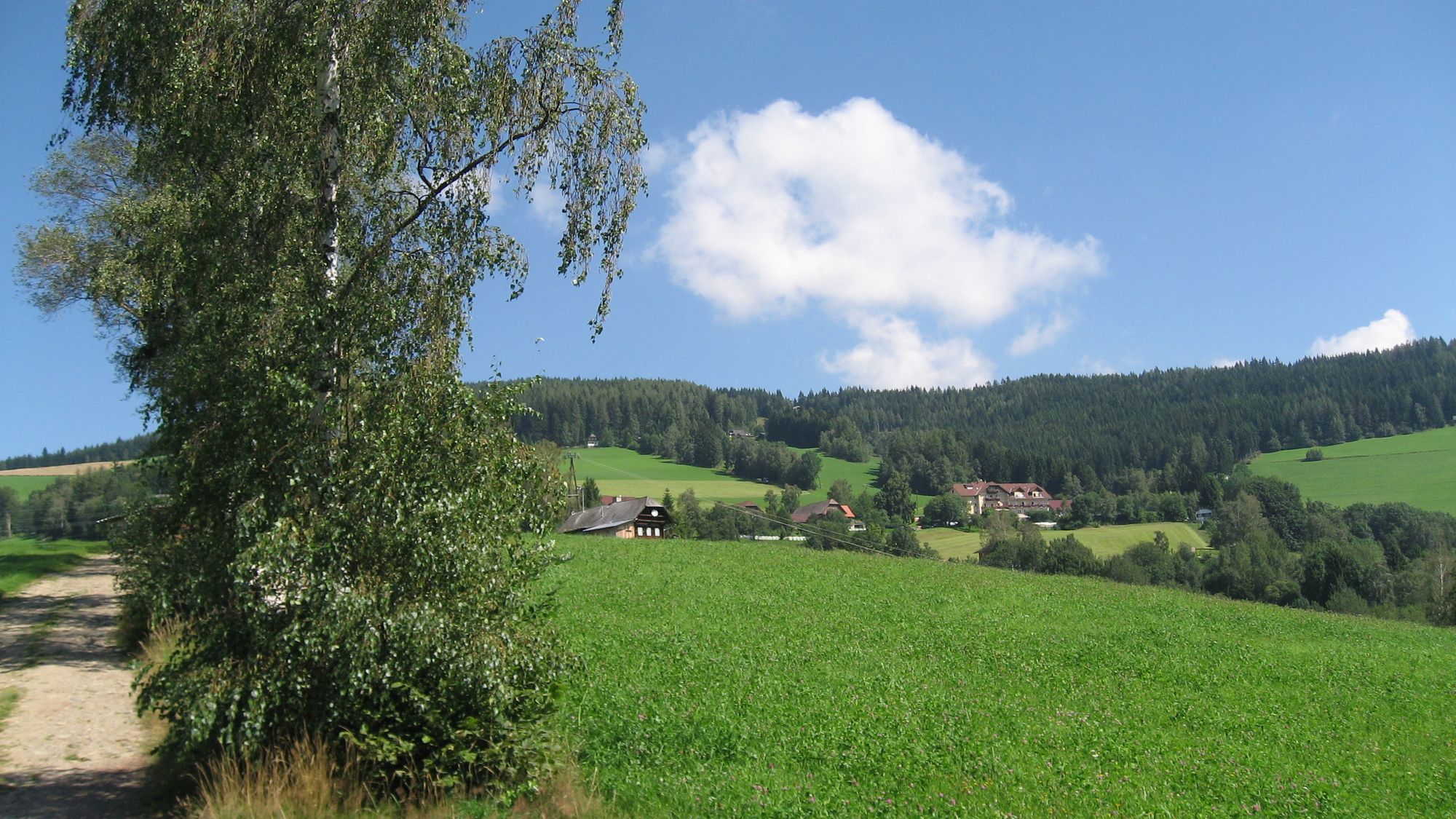 Wanderbeginn durch den Ort Richtung und Ledererbach, entlang zum Teil über gute befestigte Wege, an Wiesen und einigen Gehöften vorbei, stetig annähernd gleichmäßig ansteigend, bei den Schiwiesen mit den Liften bis zum Nahbereich Gasthof Schwengerer hoch (rd.4,5km auf rd.970m), wo es danach in den Brennwald geht.