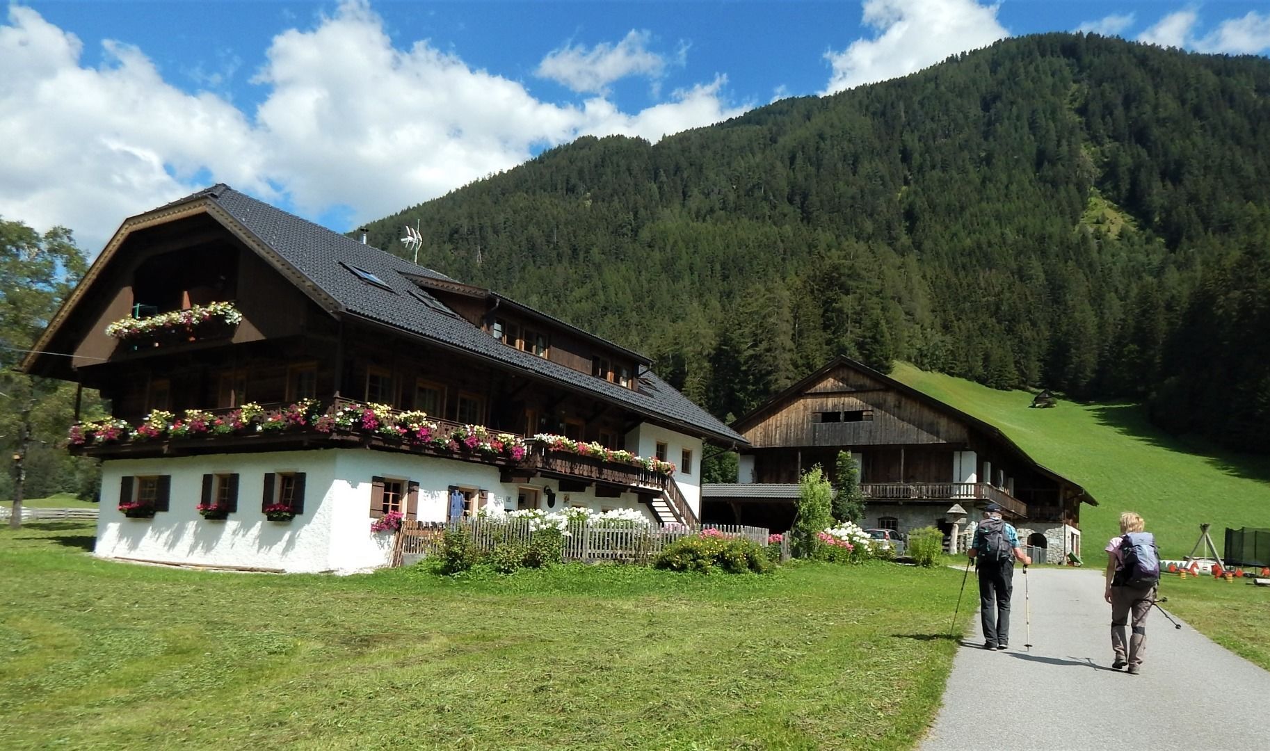 Den Antholzer Bach querend gelangt man auf die andere Talseite und zu einem Familiengrillplatz, welcher nochmals für eine kurze Rast genutzt werden kann. Immer entalng des Waldrandes wandernd geht es weiter zu einem "Solder", der oben auf dem orografisch linksseitigen Schwennkegel einen herrlichen Blick über die idyllisch gelegenen Ortschaften im Tal bietet und über die Entstehung dieser Kulturlandschaft - von der Eiszeit bis heute - berichtet. Anschließend führt der Weg über den Rand des Schwemmkegels ins Tal und das eigentliche Etappenziel in Niederrasen ist alsbald erreicht.