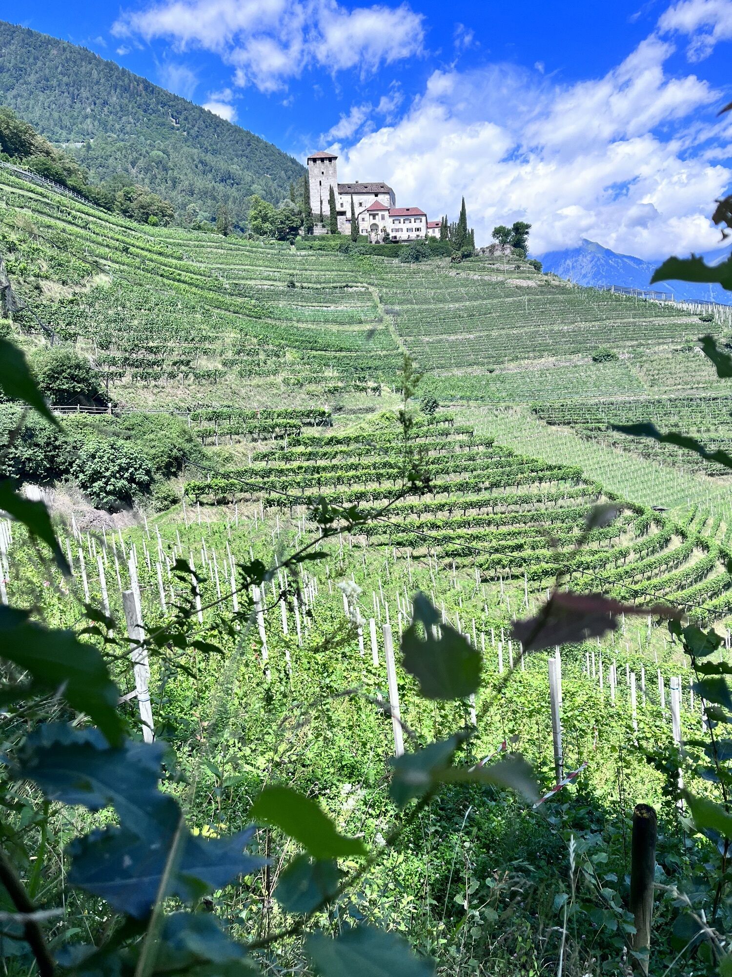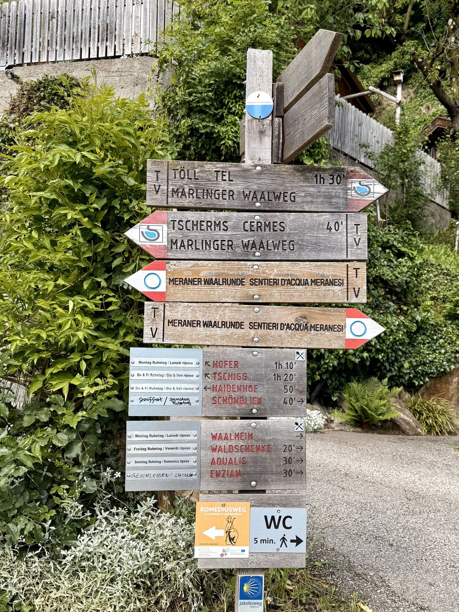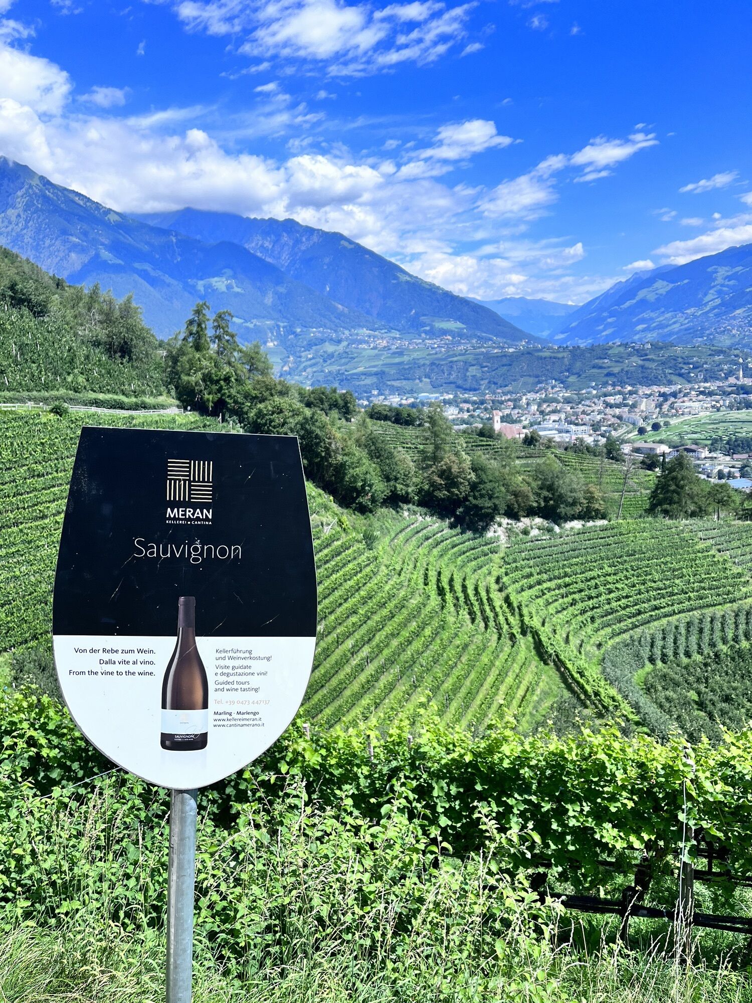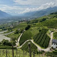 Die heutige Tour führt uns von Meran entlang der Via Claudia Augusta nach Nals. Teilweise entspricht die Strecke auch dem Jakobsweg (Camino). Wir starten zunächst entlang des Passer und verlassen Meran vorbei an der Galopprennbahn. Dann steigen wir auf durch den Ort Marling und folgen bis Lana dem Marlinger Waalweg. Ab Lana haben wir dann eine Strecke durch die Obstkulturen vor uns, die nach einiger Zeit etwas langatmig werden können. Wir kommen bei Vilpian wieder auf die Landstraße, die uns über einen Radweg an unseren Zielort Nals an der Südtiroler Weinstraße bringt.