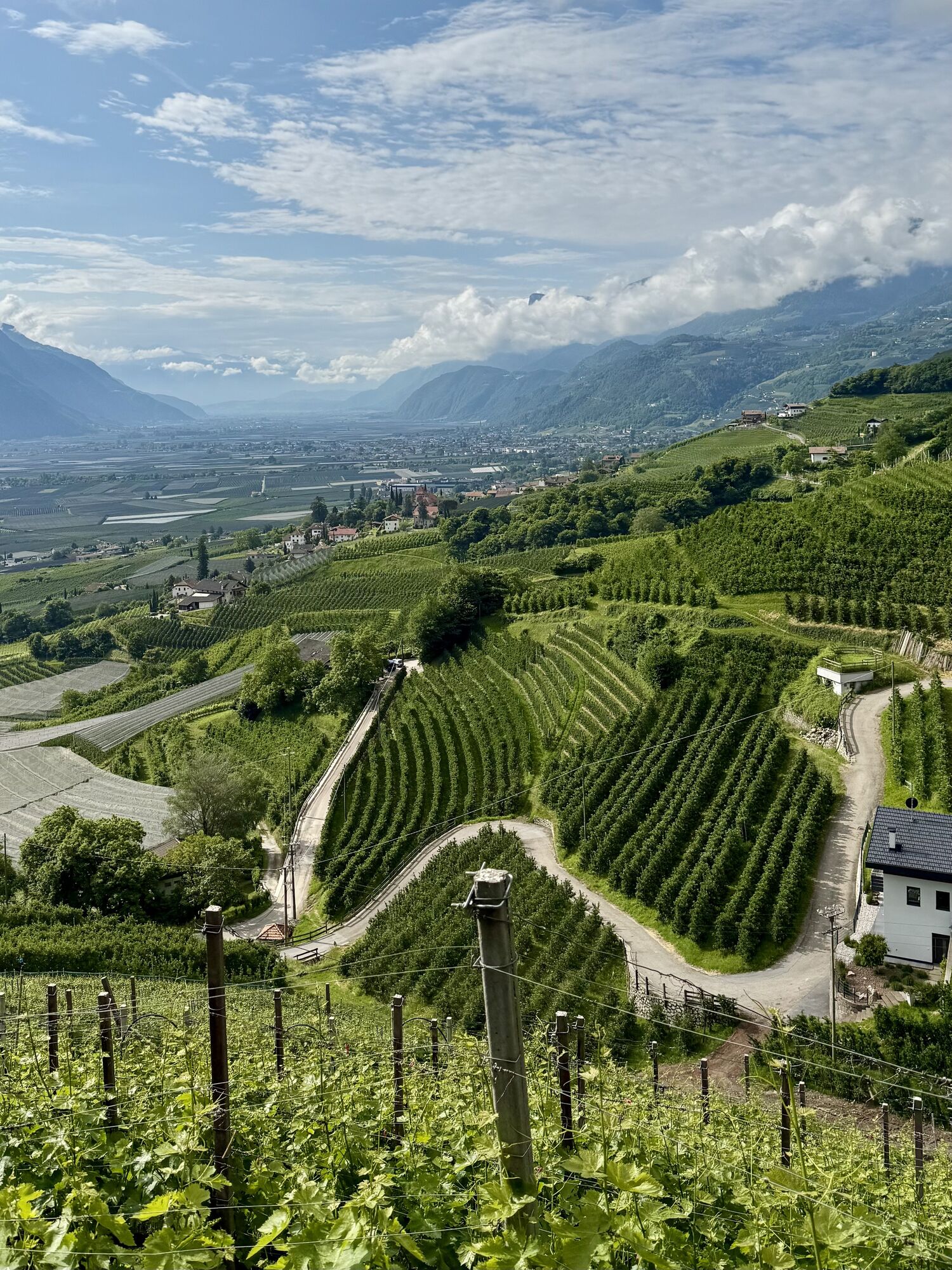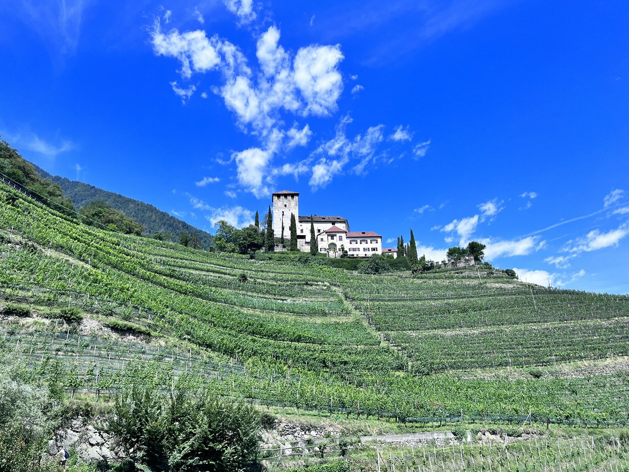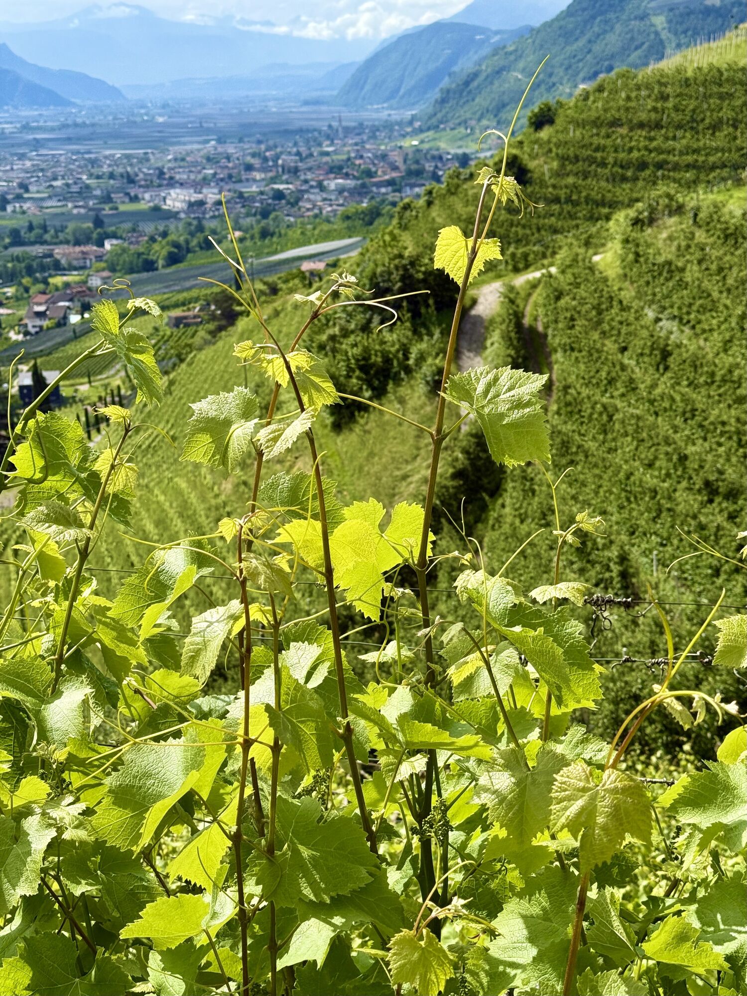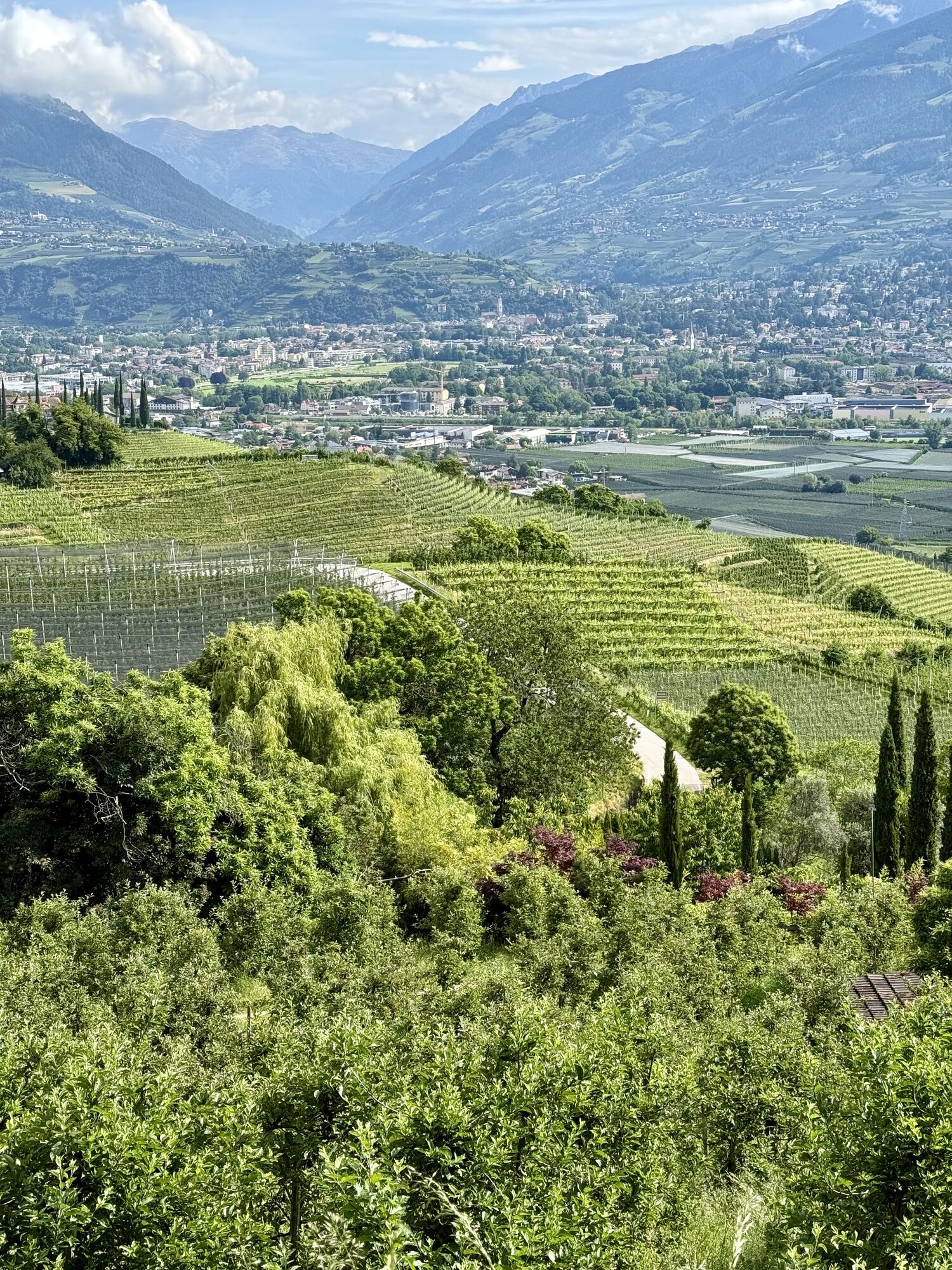 Die heutige Tour führt uns von Meran entlang der Via Claudia Augusta nach Nals. Teilweise entspricht die Strecke auch dem Jakobsweg (Camino). Wir starten zunächst entlang des Passer und verlassen Meran vorbei an der Galopprennbahn. Dann steigen wir auf durch den Ort Marling und folgen bis Lana dem Marlinger Waalweg. Ab Lana haben wir dann eine Strecke durch die Obstkulturen vor uns, die nach einiger Zeit etwas langatmig werden können. Wir kommen bei Vilpian wieder auf die Landstraße, die uns über einen Radweg an unseren Zielort Nals an der Südtiroler Weinstraße bringt.