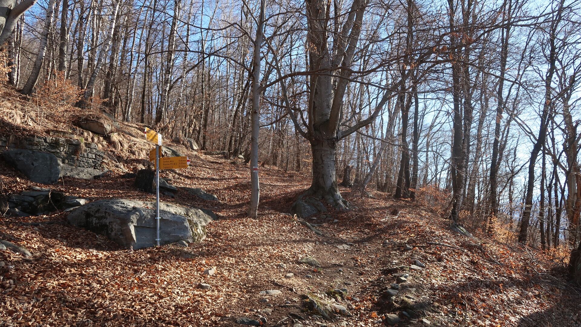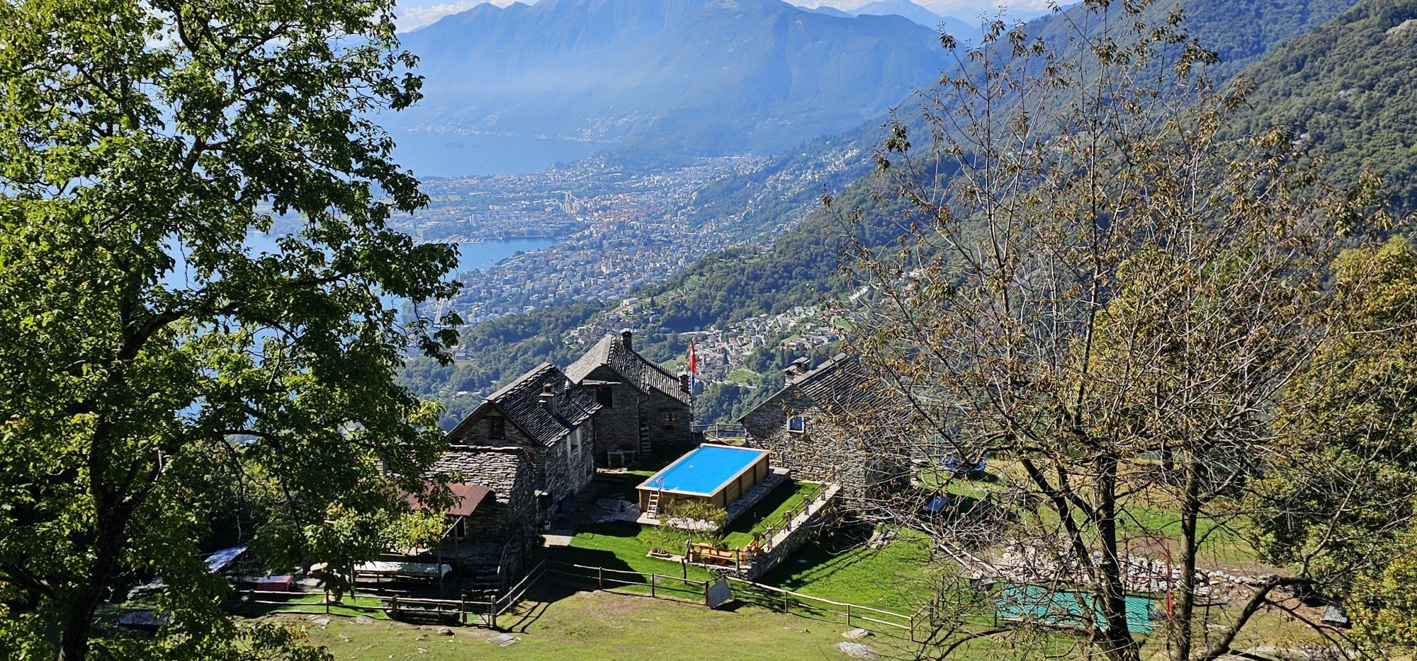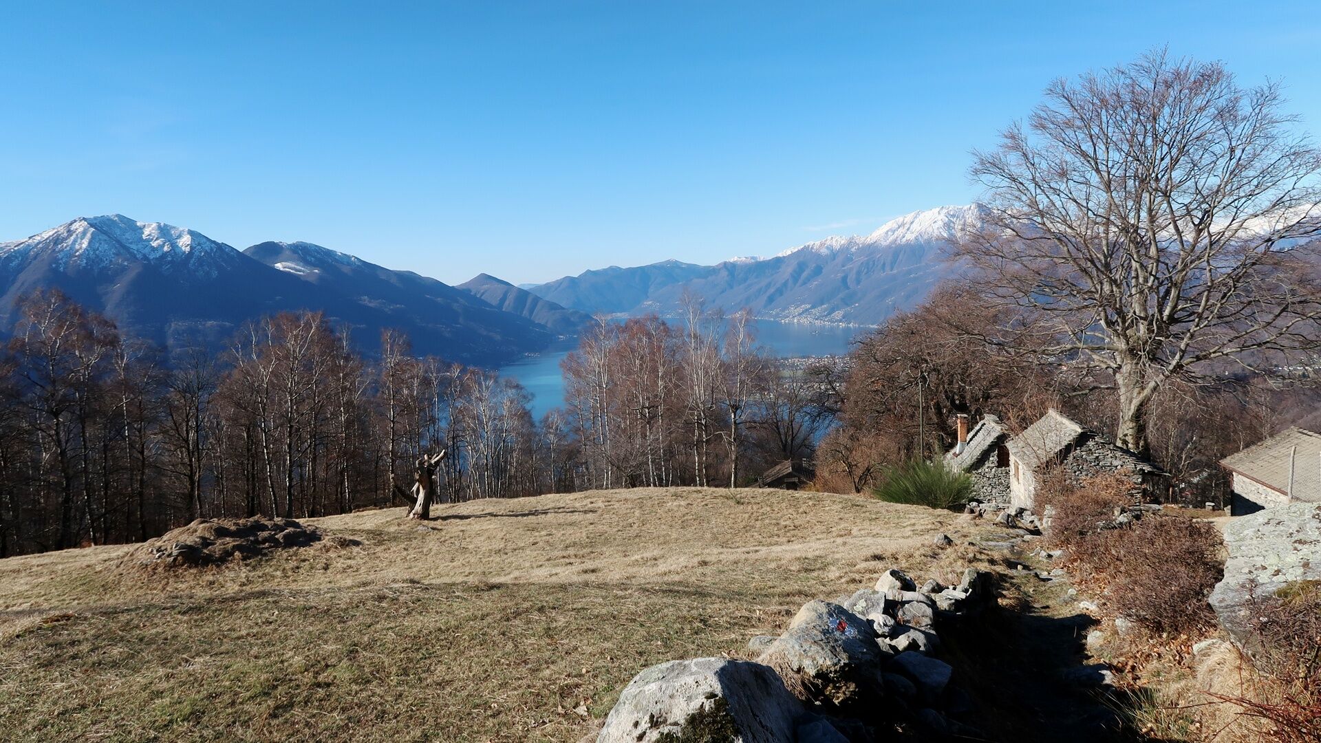 In weniger als einer Stunde erreicht man Miescio, wo man eine erste Pause auf der Panorambank einlegen kann. Nach dem Durchqueren der Häuser geht es zickzack weiter bis zu den Monti di Metri; von dort führt ein Kiesweg zu den Monti di Motti. Die Anstrengung, den Höhenunterschied von 600 Metern zu überwinden, wird mit dem Panorama auf den Lago Maggiore belohnt, und wer Hunger und Durst hat, kann sich in der Gaststube stärken. Das Highlight ist der alpine Teich mit Tretboot.