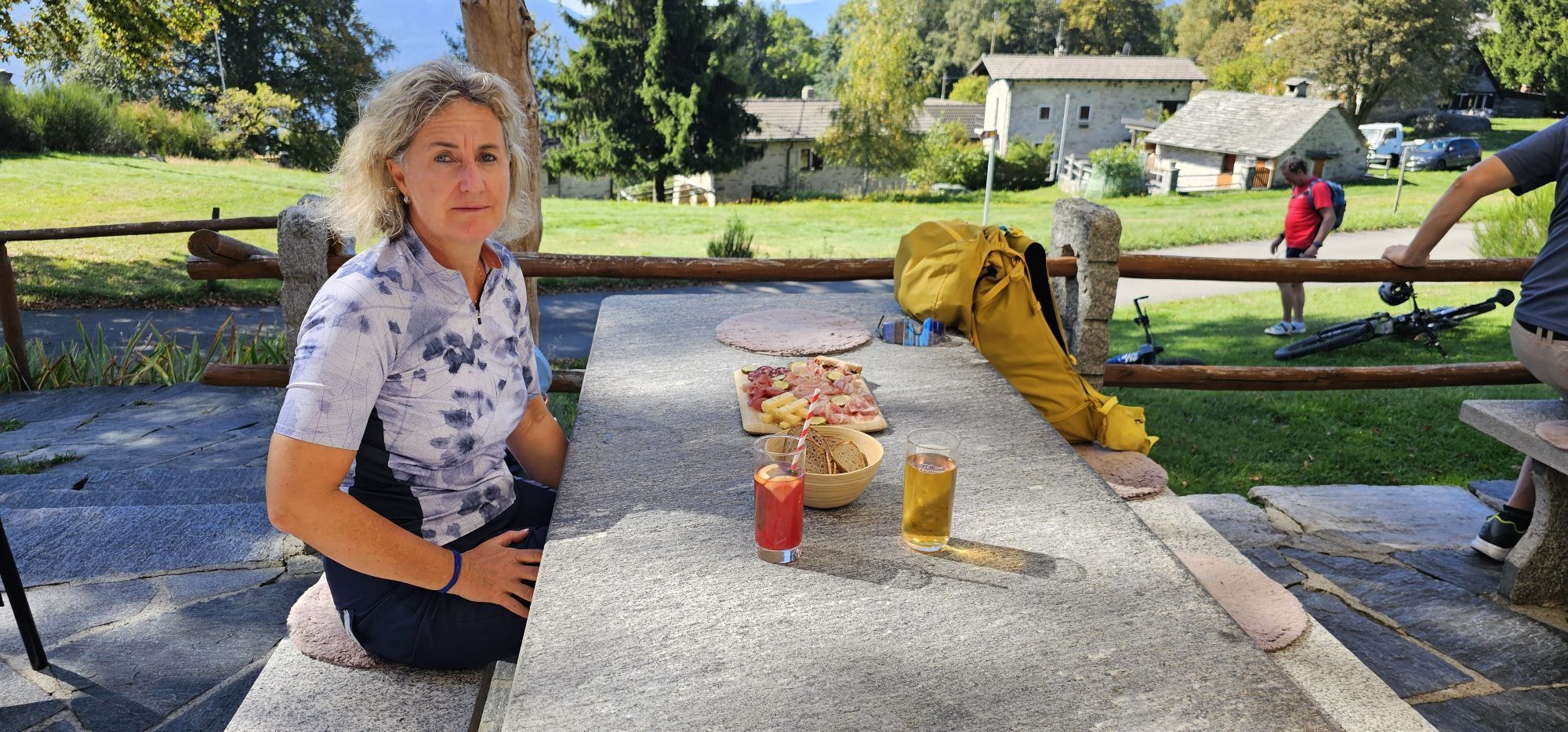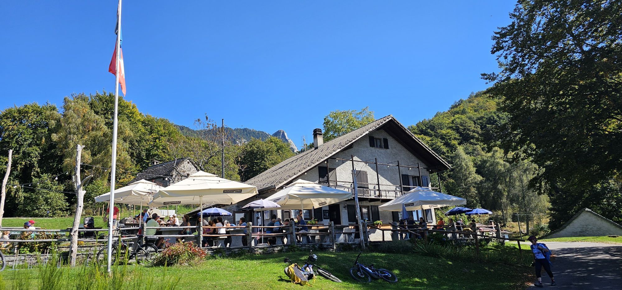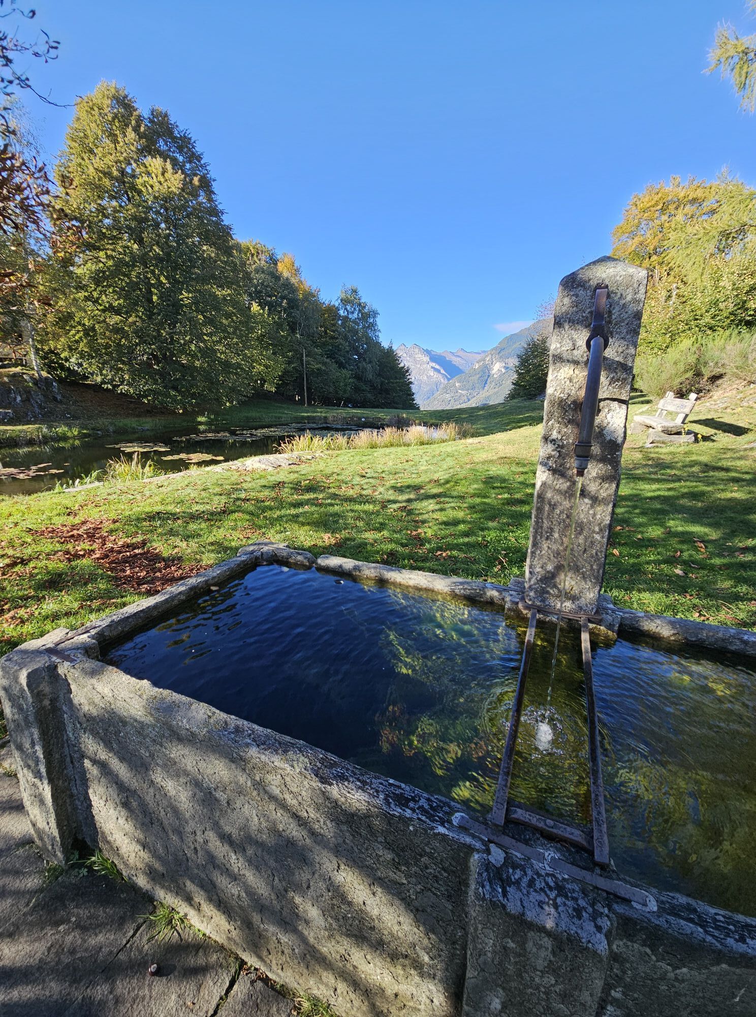 In weniger als einer Stunde erreicht man Miescio, wo man eine erste Pause auf der Panorambank einlegen kann. Nach dem Durchqueren der Häuser geht es zickzack weiter bis zu den Monti di Metri; von dort führt ein Kiesweg zu den Monti di Motti. Die Anstrengung, den Höhenunterschied von 600 Metern zu überwinden, wird mit dem Panorama auf den Lago Maggiore belohnt, und wer Hunger und Durst hat, kann sich in der Gaststube stärken. Das Highlight ist der alpine Teich mit Tretboot.