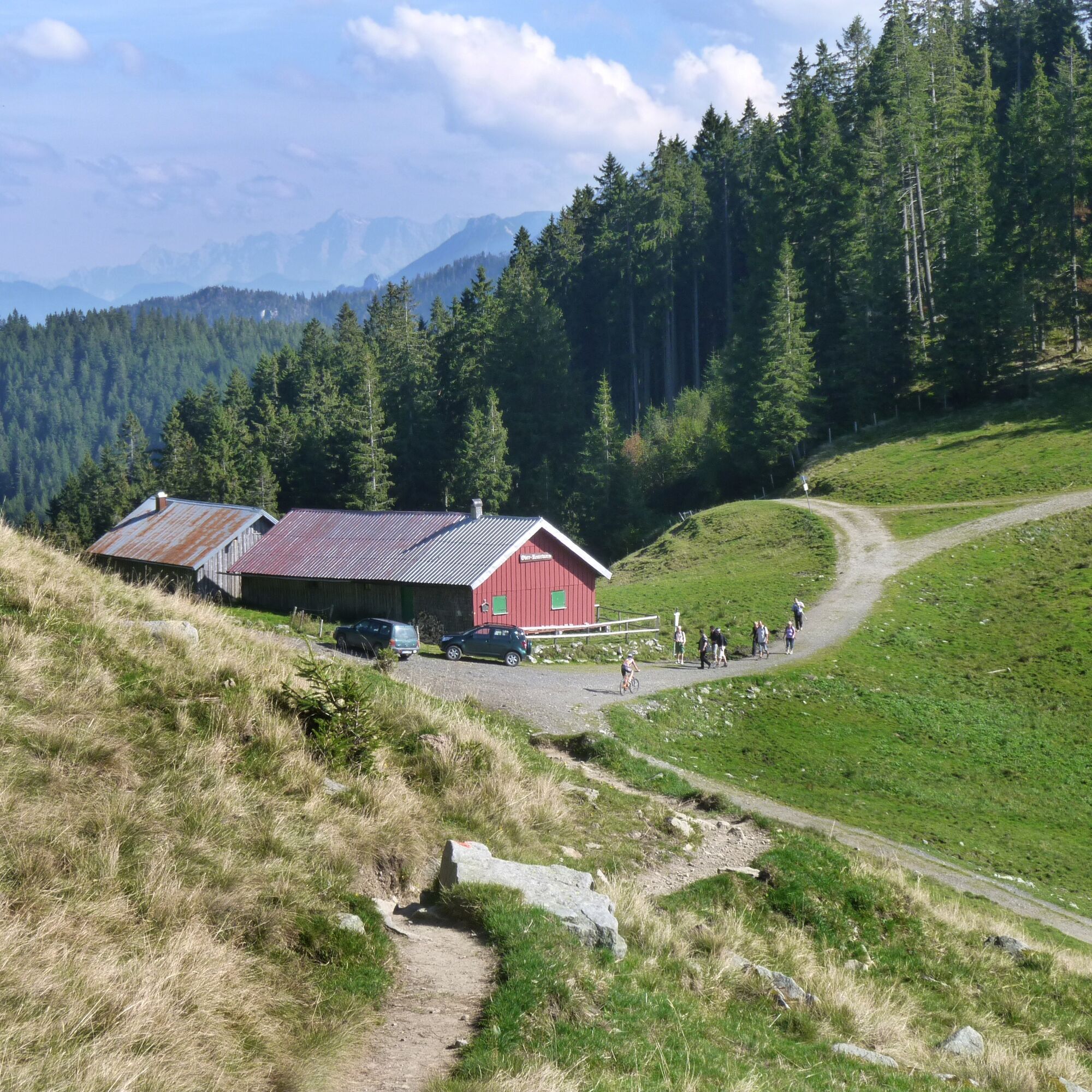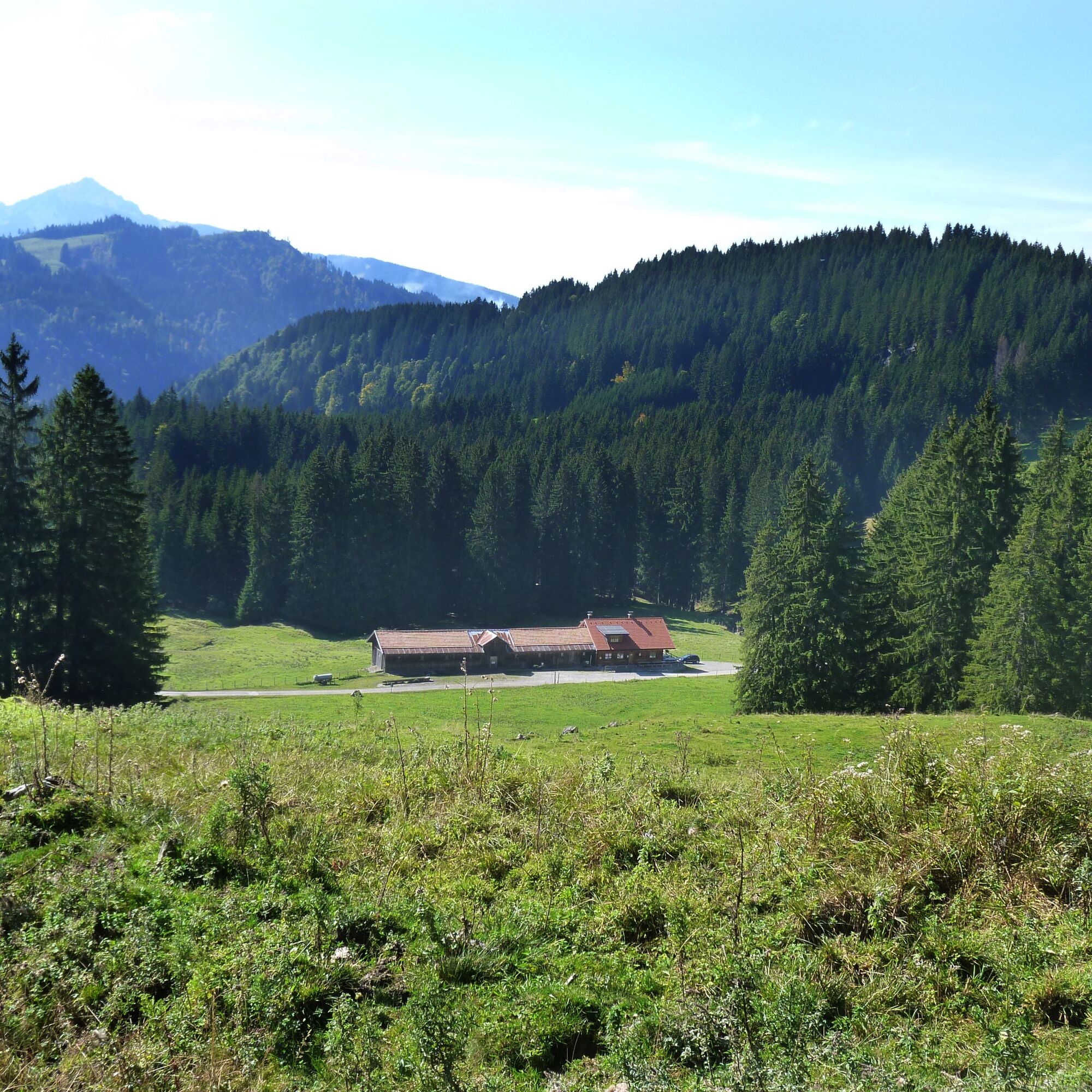 Der Parkplatz in Jungholz im Ortsteil Langenschwand ist der Ausgangspunkt der Wanderung. Nur ein kurzes Stück Richtung Jungholz Ortsmitte, dann zweigt der Weg hinter der Kapelle nach rechts ab. Ein kurzer Anstieg bringt uns auf den Panoramaweg über Jungholz. Vorbei an der Kneippanlage, dem idyllischen Moorweiher und dem Wasserbecken zur Schneeerzeugung gelangen wir zur Abzweigung Reuter Wanne. Schön zieht sich der Weg durch den Wald und über Lichtungen, die immer wieder neue Aussichten frei geben. Der Schotterweg ist stetig steigend und hat mehrere Abzweigungen, welche aber alle bestens beschildert sind. Weiter oben wird aus dem breiten Fahrweg ein schlichter Wanderweg, der aber immer noch gut zu begehen ist. Dann kommt ein etwas steilerer Wegabschnitt durch den Wald. Nach dieser Passage ist das Gipfelkreuz schon sichtbar, und nach kurzer Zeit auch erreicht. Trotz der geringen Seehöhe des Gipfels bietet sich eine schöne Rundumsicht. Der Abstieg erfolgt über den Grashang der direkt nach Jungholz zu führen scheint. Doch dann biegt der Weg nach links, und relativ rasch ist die Hütte der Obere Reuter Wanne erreicht. Nach einigen Metern auf dem Fahrweg sollte man die Abzweigung zur Alpe Stubental nicht verpassen. Großteils durch Wald führt uns der Weg an der Flanke des Pfeifferberg zur Alpe Stubental. Nach einer Rast gehen wir auf der Asphaltstraße den Rest des Weges wieder nach Langenschwand. Mit vielen positiven Eindrücken verlassen wir Jungholz. Links neben uns sehen wir den Sorgschrofen, die einzige Verbindung von Jungholz mit dem Tannheimer Tal, und machen uns so einige Gedanke.