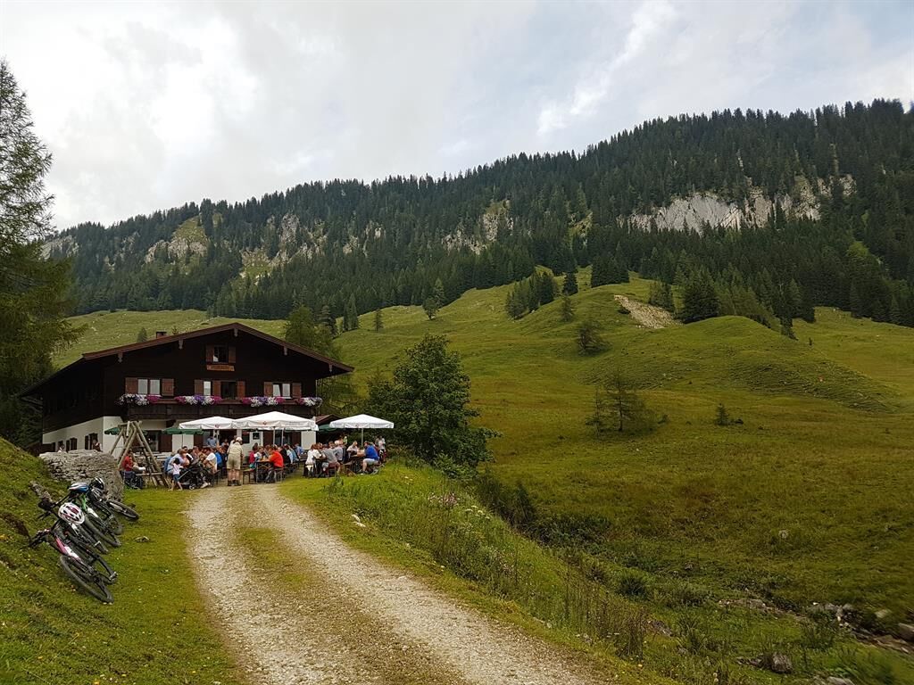 Von dort führt ein mäßig steiler, geschwungener Weg durch Wald und Almengebiet bis zur Alm.