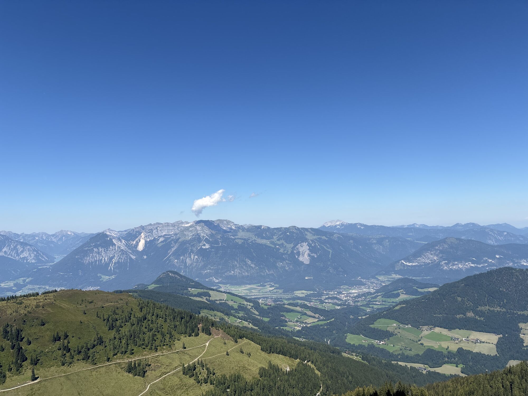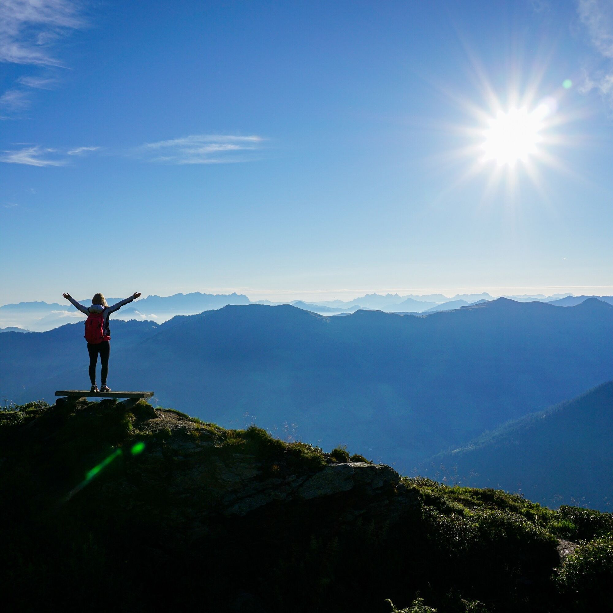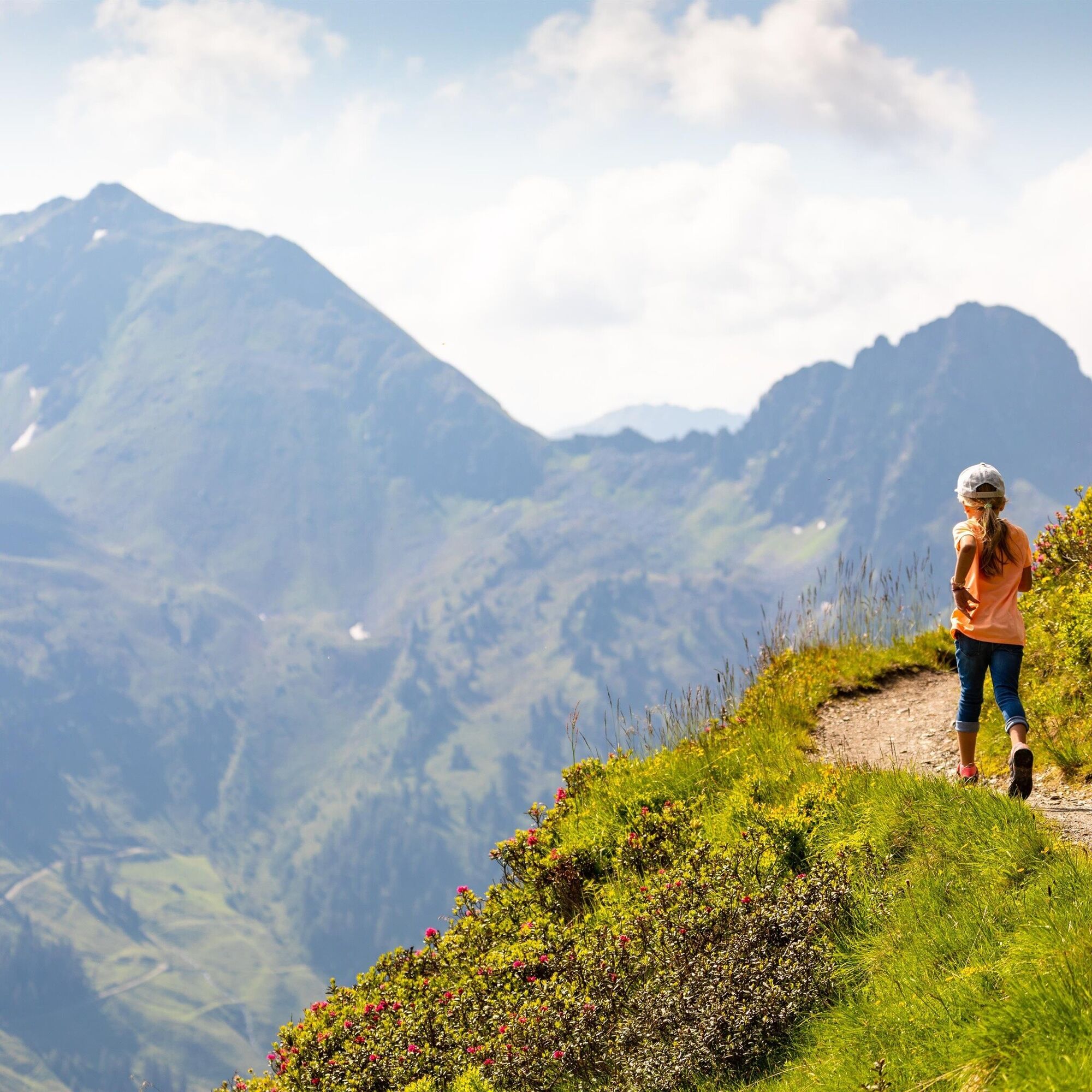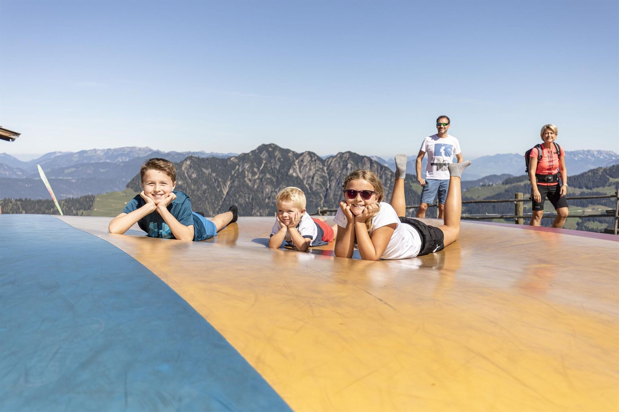 Nach der gemütlichen Bergfahrt mit der Wiedersbergerhornbahn führt die Wanderung zuerst auf den Gipfel des Wiedersberger Horns. Hierfür sind 300 Hm zu überwinden. Für die seilgesicherten Stellen in Gipfelnähe gibt es einfache Umgehungen, welche auch für kleinere Kinder gut zu bewältigen sind. Nach ca. 1 h ist das erste Ziel erreicht. Die Aussicht zu den Zillertaler Alpen, dem Achensee, dem Rofangebirge, den Brandenberger - und Kitzbüheler Alpen sowie der Tiefblick ins Inntal von Innsbruck bis Bayern ist überwältigend!