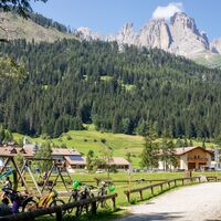 Radeln Sie inmitten der Natur auf den Radwegen des Fassatals, einer Route, die sanft dem Lauf des Baches Avisio folgt, zwischen Wiesen, Wäldern, malerischen Dörfern und Postkartenansichten. Die Reise beginnt in Alba di Canazei auf einer bequemen Straße, die am rechten Ufer des Baches Avisio entlangführt. Nachdem Sie die Staatsstraße in der Nähe des Zivilschutzzentrums vorsichtig überquert haben, fahren Sie weiter in Richtung Canazei, vorbei am Camping Marmolada, dem Wasserzentrum Dòlaondes und dem Spielplatz. Nehmen Sie die "Stréda de Cercenà" und biegen Sie an der Gabelung links auf die "Stréda de Ciuch" ab, die Sie in Richtung Süden entlangradeln. Die Strecke, die zunächst von üppigen Kiefern beschattet wird, führt zum Gebiet "Ischia" in Campitello, wo Sie schräg die "Stréda de Pènt de Sera" überqueren. Sie fahren am Camping Miravalle, dem unteren Teil des Dorfes und den nahe gelegenen Weilern Fontanazzo di Sotto, Campestrin und Mazzin entlang, ohne jemals die Ortschaften zu durchqueren. Der Weg verläuft immer abseits und durch die Stille des Tals. Von hier aus beginnt eine angenehme Abfahrt in Richtung Pera, die von einigen leichten Anstiegen und Abfahrten bis zur Ortschaft "Fraine" durchsetzt ist. Wenn Sie keine Pause auf dem Spielplatz einlegen möchten, meiden Sie die Brücke und folgen Sie der Hauptstrecke. An der Bushaltestelle in der Ortschaft "Vac" folgen Sie einem kurzen Abschnitt der Staatsstraße, überqueren den Kreisverkehr nach "Meida" und kehren vor dem Hotel Monzoni auf den Radweg zurück. Radeln Sie am Camping Rosengarten vorbei, überqueren Sie die Brücke und lassen Sie Pozza hinter sich, während rechts Vigo mit dem Glockenturm der Pfarrkirche San Giovanni in den Himmel ragt. Die Landschaft wird noch eindrucksvoller: Grüne Wiesen, duftende Wälder und spektakuläre Ausblicke öffnen sich auf den Kämmen des Rosengartens und des Latemar.