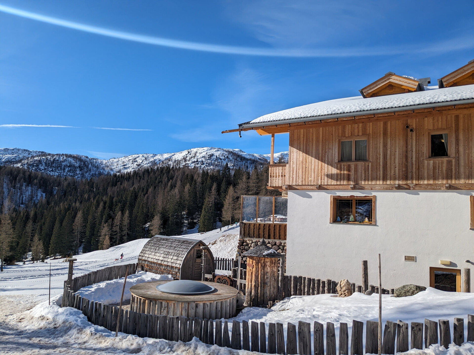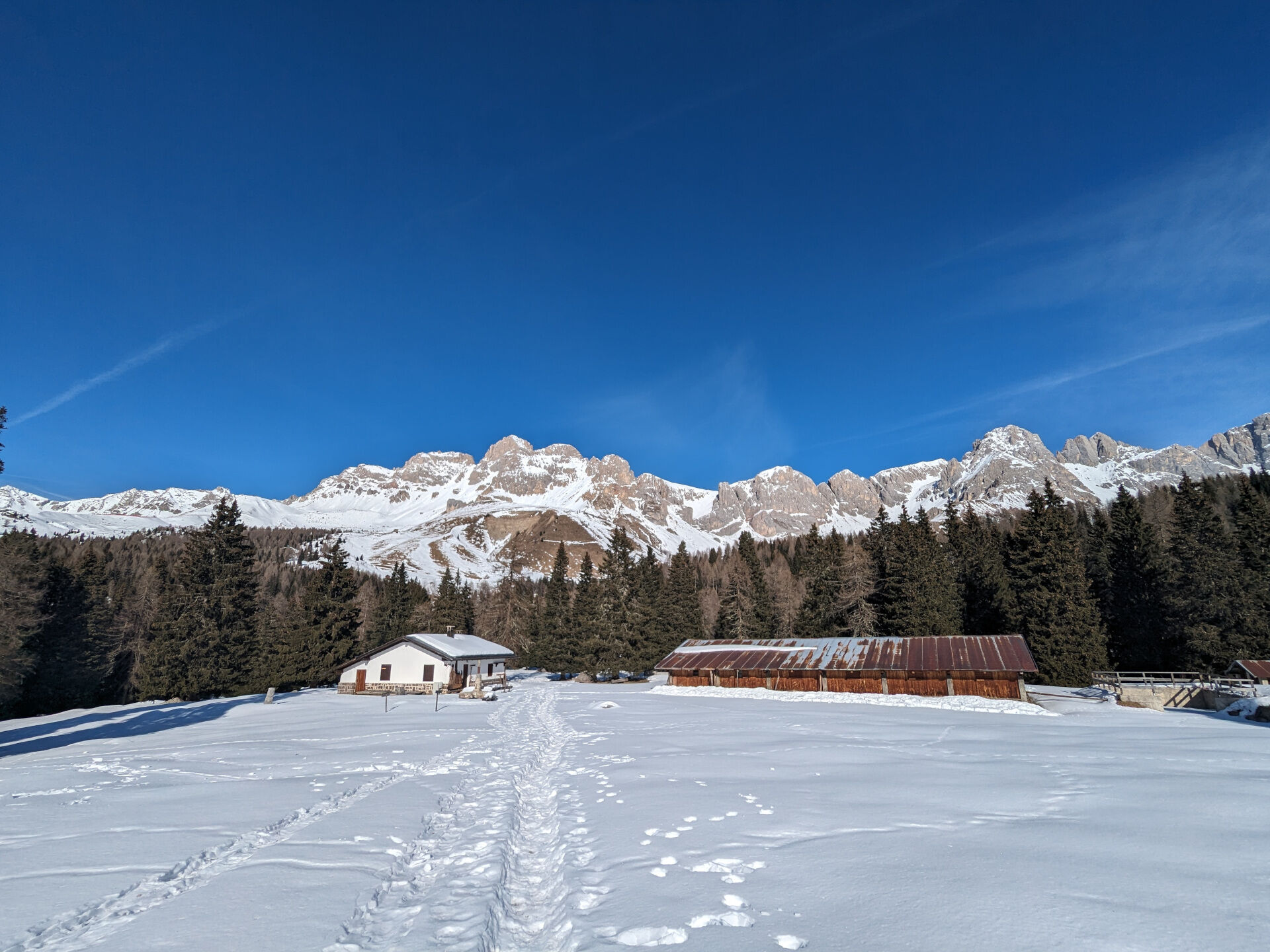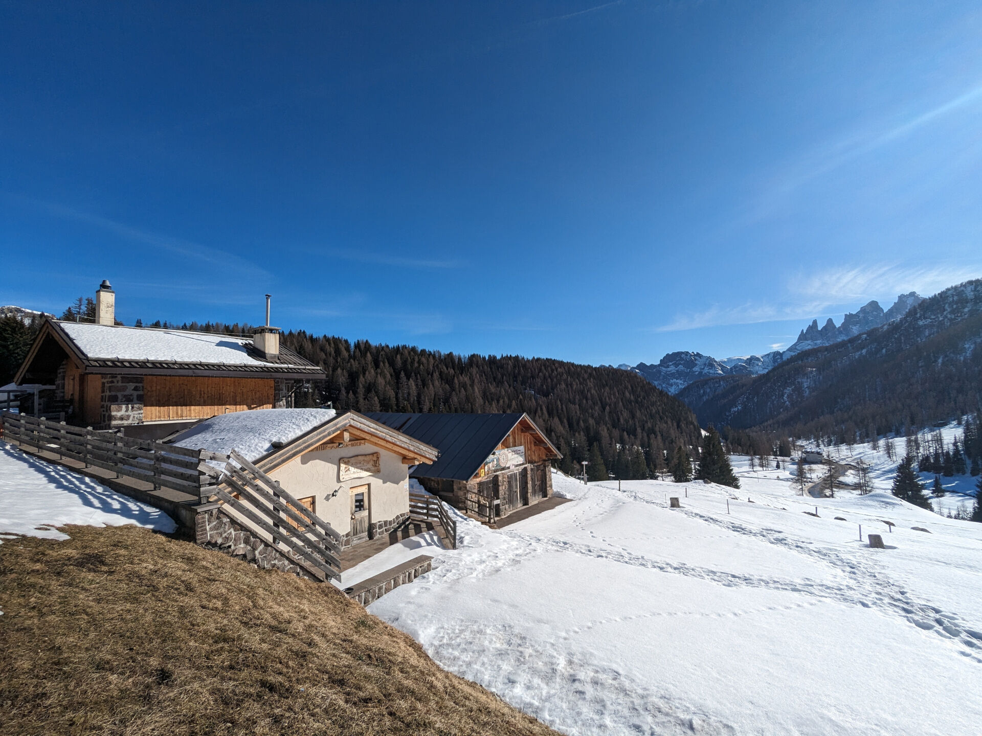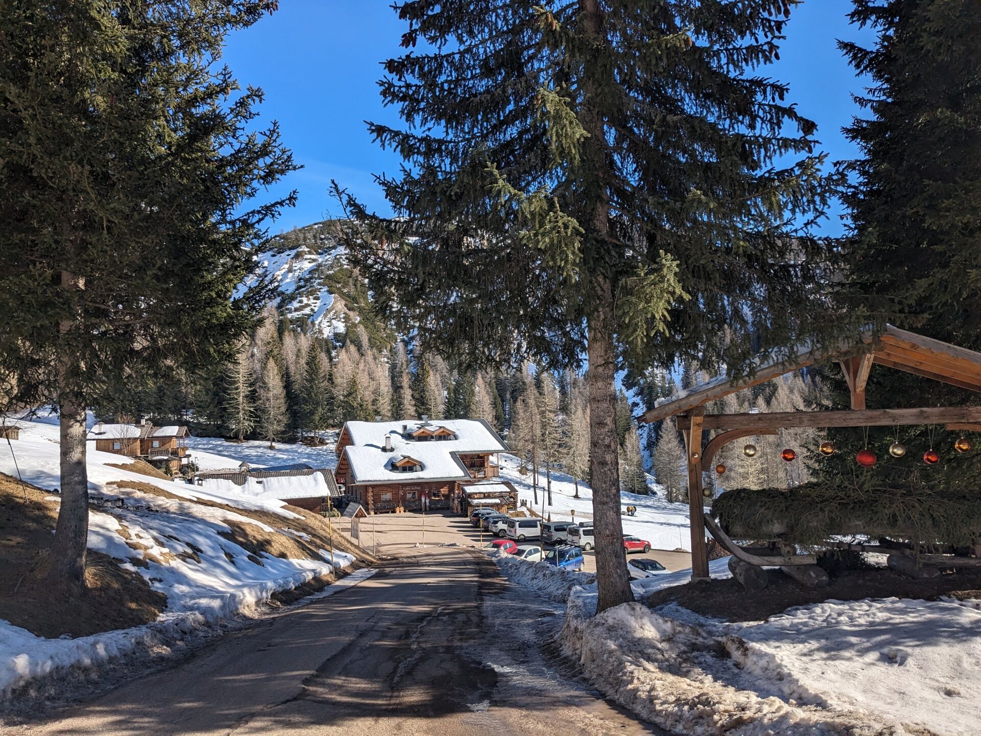 Nach der Boer Alm, gleich nach der kleinen Brücke, gibt es rechts weitere kostenlose Parkplätze. Die Hütte kann auch mit dem Auto erreicht werden. Es ist möglich, die Wanderung in Richtung Valfredda fortzusetzen (keine Kinderwagen).