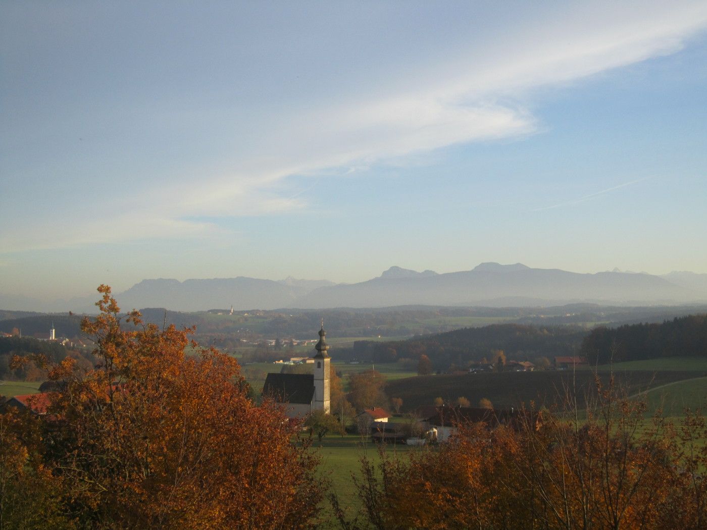 Vom Schlossberg aus bietet sich Ihnen ein wunderschöner Panoramablick in die Berchtesgadener und Chiemgauer Alpen.