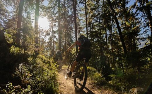 Von Turtig aus ist der Ausgangspunkt der Route in Eischoll bequem mit der Seilbahn zu erreichen. Der Abfahrtsspass des Lufu-Trails beginnt direkt bei der Bergstation der Bahn. Der Lufu-Trail ist als Singletrail ausgelegt und weist zwar einige technisch etwas anspruchsvollere Passagen auf, ist aber für geübte Bikende dennoch flüssig zu fahren. Er ist als mittel bis schwer eingestuft und führt über eine kurvenreiche Strecke bis hinunter ins Tal. Dabei geht es sowohl über ausgediente Wanderwege als auch über neu erstellte Wegabschnitte, Bikende erleben viel Abwechslung und Verspieltheit. Der Trail ist über weite Strecken naturbelassen, wird aber durch verschiedene Ausbauten wie Wellen, Mulden, Steilwandkurven und kleinere Sprünge erheblich aufgepeppt. Einmal unten im Tal in Turtig angekommen, geht den meisten Bikenden nur eines durch den Kopf: nochmal. Nichts einfacher als das: Nach nur acht Minuten Fahrt mit der Seilbahn stehen Sie schon wieder oben am Start in Eischoll.