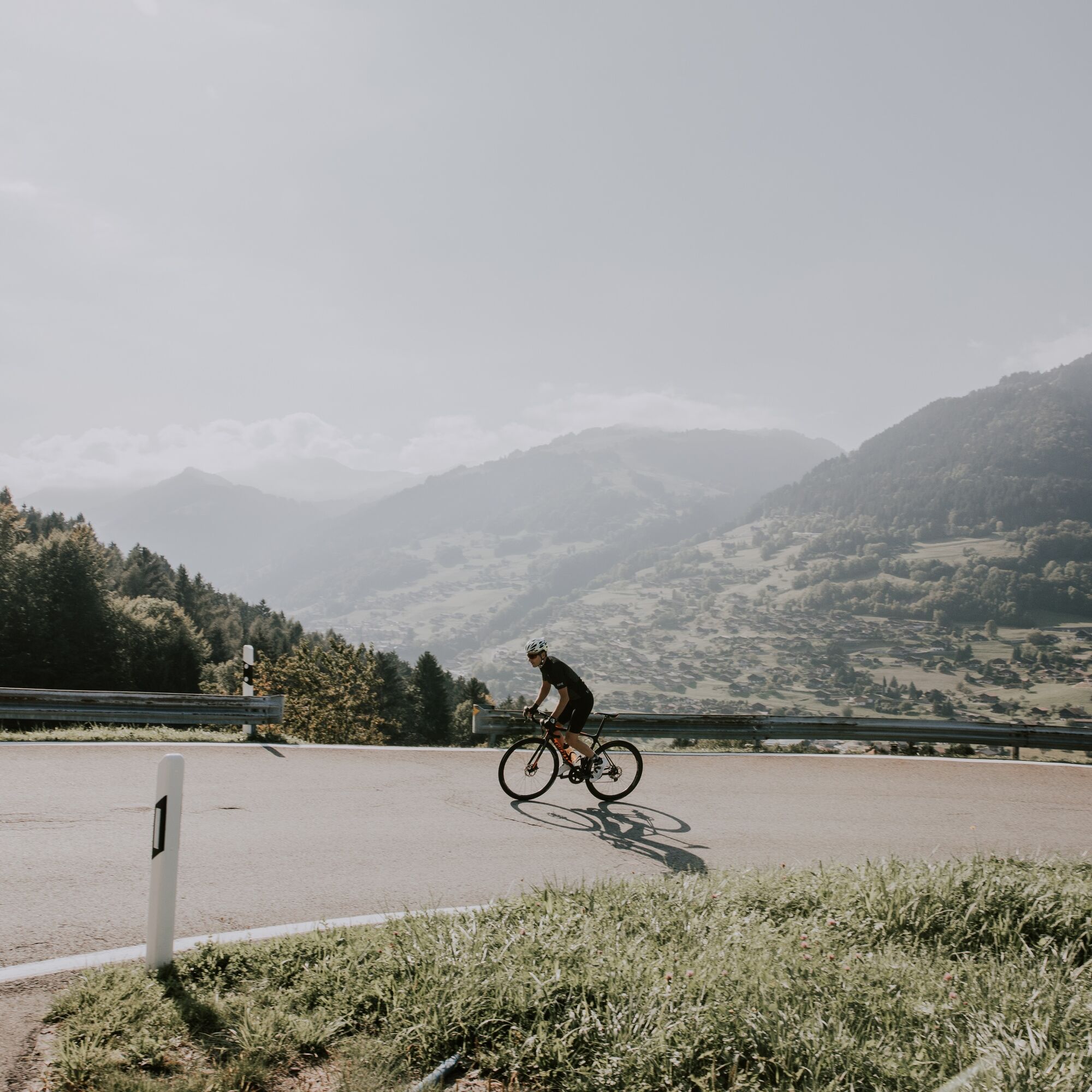 Vom Rhoneufer bei Massongex führt die Route in Richtung Dent de Valerette. Dann fahren Sie auf den ersten flachen Kilometern dem Waldrand entlang und erreichen den Weiler Fontany. Von hier aus schlängelt sich die Strasse in Kehren steil hinauf und Sie gewinnen schnell an Höhe. Nachdem Sie unterhalb des Dorfes Daviaz durchgefahren sind, verläuft die Route geradliniger entlang von Wiesen, bevor sie Vérossaz in zwei weiten Kurven durchquert. Den letzten Teil des Aufstiegs mit einer fast konstant anspruchsvollen Steigung absolvieren Sie im Schatten des Waldes. Denken Sie daran, von Zeit zu Zeit zwischen den Bäumen hindurch einen Blick auf das Chablais zu werfen. Auf etwas mehr als 1100 Metern Höhe erreichen Sie das Dorf Les Giettes und damit den Endpunkt der Route. Bei der Verzweigung können Sie sich entscheiden, direkt in Richtung Choëx hinunterzufahren oder rechts abzubiegen und noch ein paar weitere Kilometer aufzusteigen.